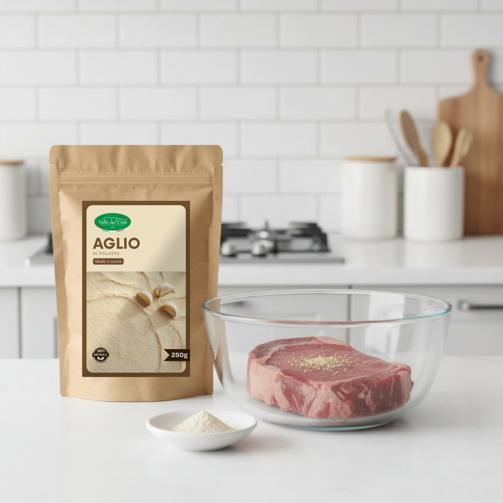 L’aglio in polvere è un ingrediente estremamente versatile, perfetto per dare profondità ai piatti in modo rapido e controllato: regala tutto il gusto dell’aglio fresco, ma con maggiore praticità e senza tempi di preparazione.
