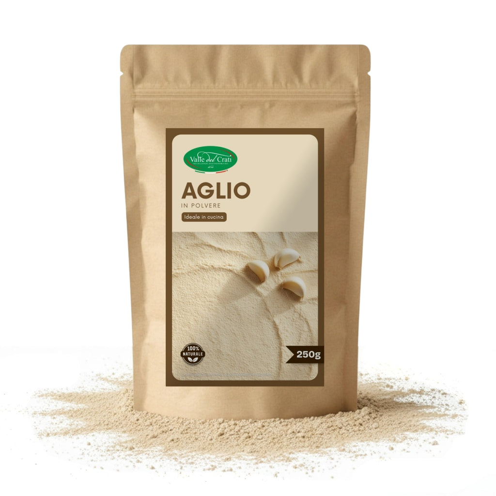 Il nostro aglio in polvere è confezionato in sacchetti ermetici, che proteggono dall’umidità, dalla luce e dall’aria.